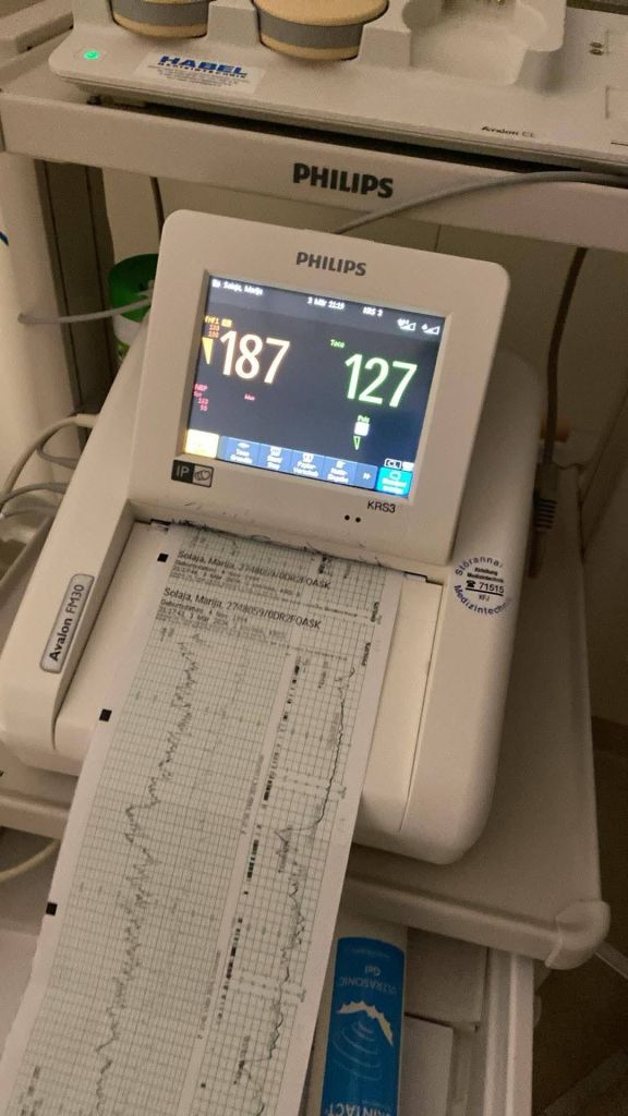 Vozač govori,kako je super voziti brzo, pogotovo ovako rano kada grad još uvek spava. Premeštam se na sto za pregled, muž je ubrzo stigao. Rutinska obrada podataka. Merenje pritiska, ctg, postavljanje braunile za infuziju. Dolazi jedna babica stažista ili na praksi, koja započinje vaginalni pregled, kako je započela pregled tako je u tom trenutku izletelo mnogo plodove vode. Sva je bila mokra. Rekla mi je da sam 1cm otvorena, ako uzmemo u obzir da je to tek otvaranje grlića. Dobili smo naš apartman i rekli su da čekamo. Muž i ja smo igrali karte, ručali, pričali, zamišljali kako će naše dete izgledati i eto ubrzo počinju kontrakcije, prvo na 30 min, pa na 20,15,10min.