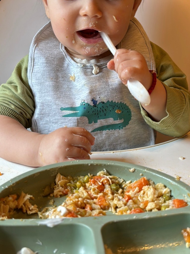 Hranjenje u ovom uzrastu postaje važan deo detetove samostalnosti. Dete već ima nekoliko obroka dnevno i postepeno se uključuje u porodični ritam ishrane. Hrana je raznovrsnija, gušćih tekstura i sitno seckana, kako bi dete učilo da žvaće. Prsti postaju glavni „alat“ za jelo, što je značajno za razvoj fine motorike i koordinacije oko–ruka. Često se javlja želja da dete samo odlučuje koliko će pojesti, uz povremeno odbijanje hrane, što je normalan deo razvoja i znak da dete uči da prepoznaje osećaj gladi i sitosti. Važno je nuditi zdrave obroke, bez prisile, u mirnoj i pozitivnoj atmosferi.
